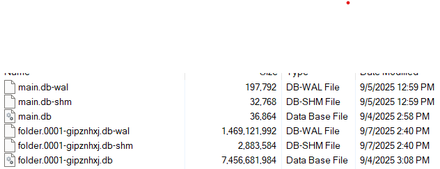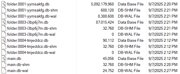 I guess we’ll need some status indication for this too - I didn’t expect this migration to take particularly long. As we don’t have that for now, to observe progress can you please check the sizes of the files in the syncthing DB directory. Use your favourite tool to get the sizes (e.g. ls -lh) and note the time. For one folder-* set of files after the other, over time I’d expect the *-wal files to grow quite significantly, then a period of not much happening when data is moved from the wal to the main db, and then the *-wal shrinks to size 0 (or is entirely removed). Then the same thing for the next folder.