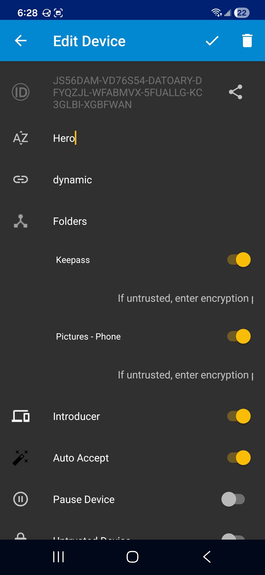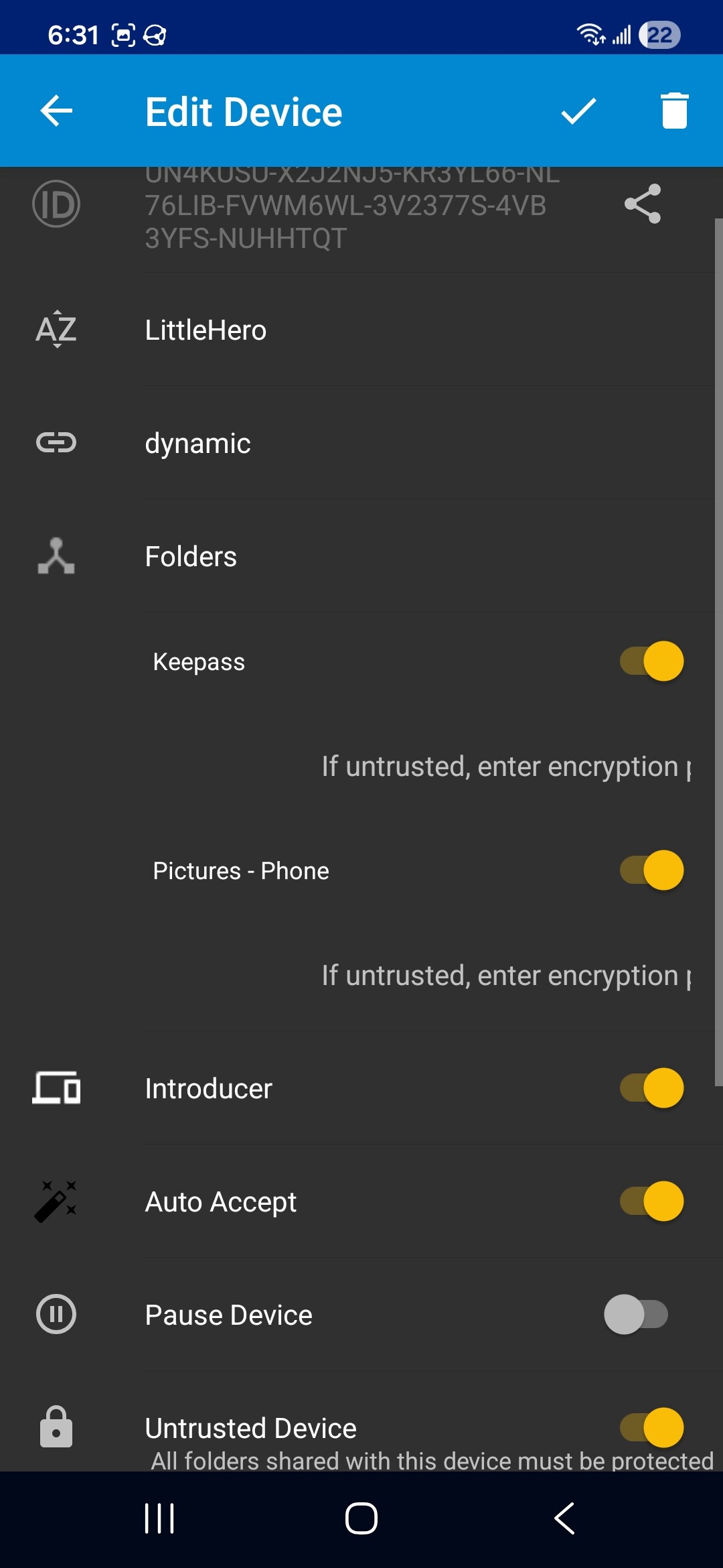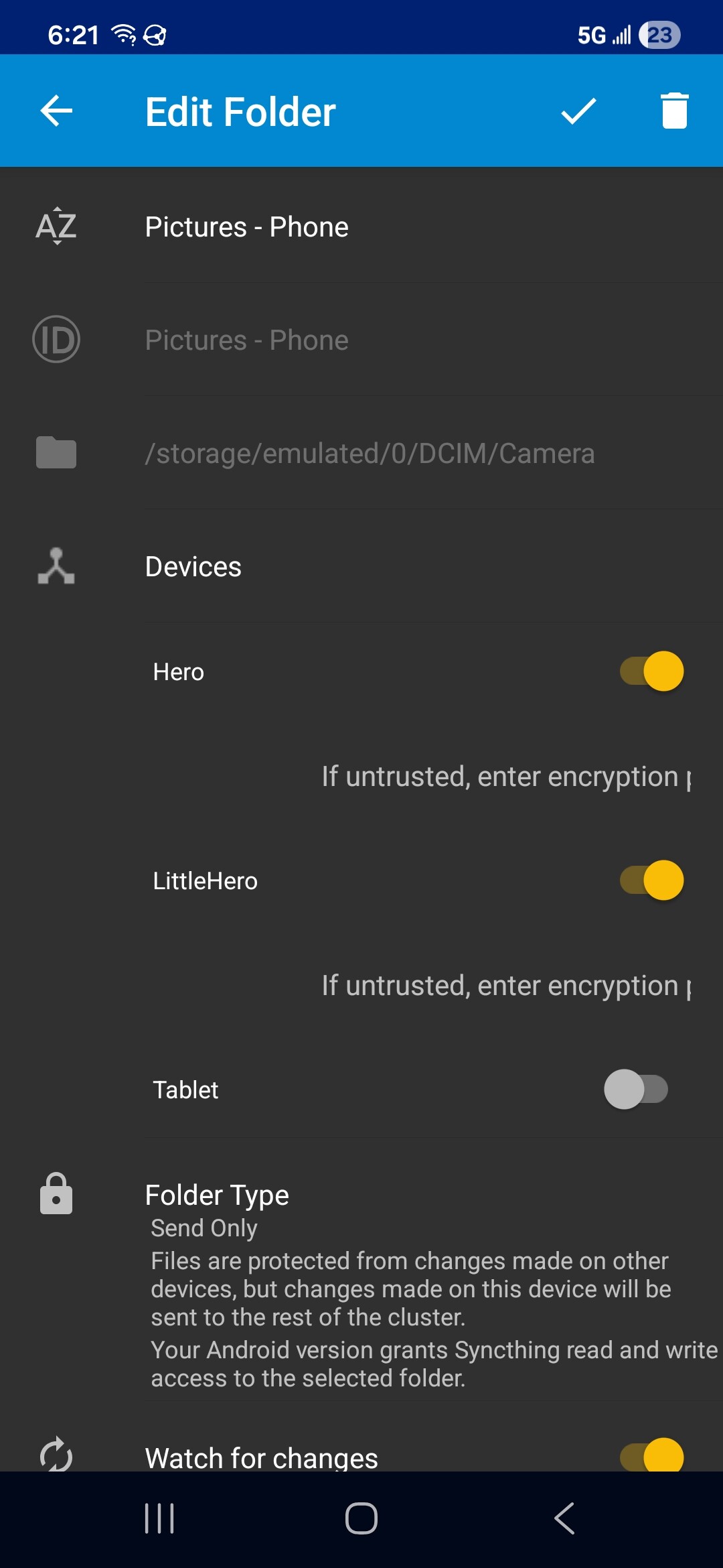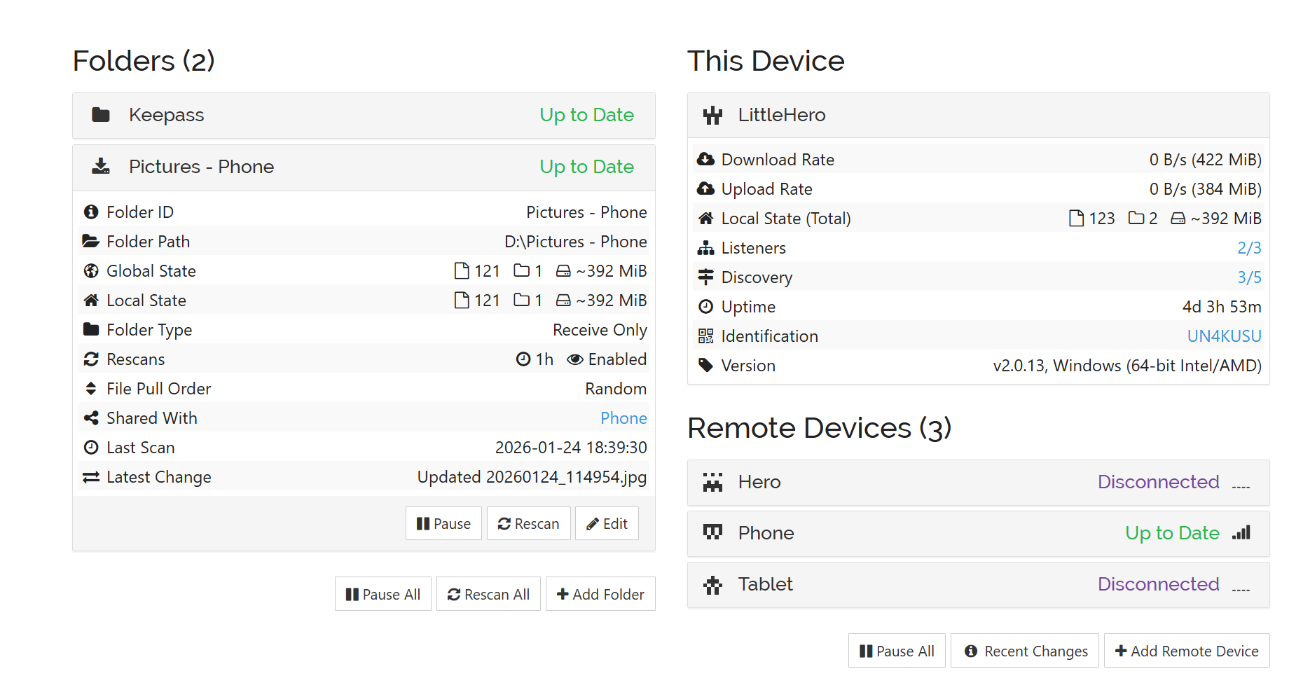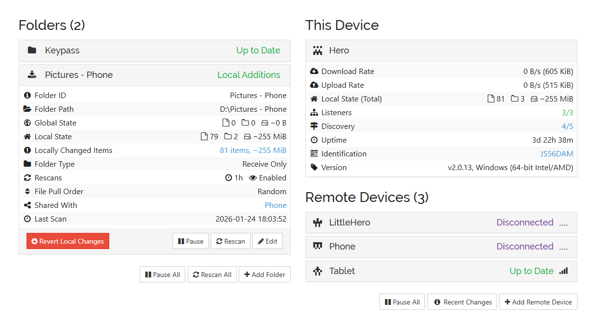 Your screnshots show Phone and LittleHero connected, and Hero and Tablet are connected. I’m thinking that you want all of your devices connected and syncing.