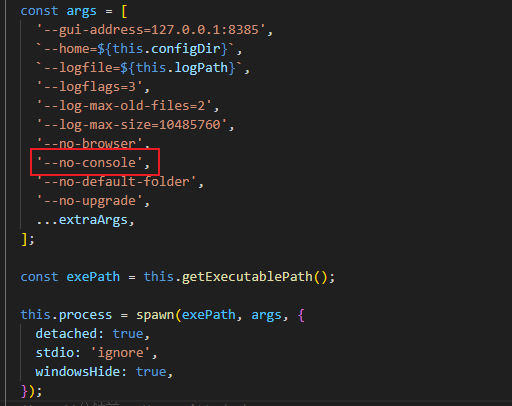 I’ve checked that URL, but the methods mentioned there don’t quite match my requirements. My project needs can be simplified as follows: when I start the project, Syncthing should also start, and when I close the project, Syncthing should stop. The control entity is my project, and since I’m using Node.js, I’m now looking for a method to invoke Syncthing—or leverage Windows capabilities to start Syncthing—on the Windows platform through Node.js. The goal is to run Syncthing without opening the command window. Hmm… VBScript isn’t a good solution. I’ll try using PowerShell or CMD instead. My only concern is that since Syncthing isn’t directly controlled by Node.js, whether it might lead to other unexpected issues.