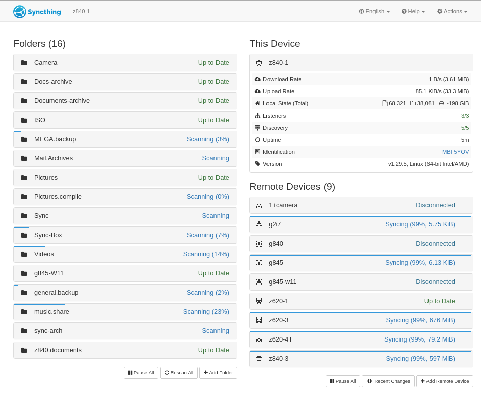 [MBF5Y] 2025/08/20 11:27:17 INFO: Lost primary connection to PDJKYGZ at [fe80::ed2c:d0ca:4a9:689f%eno1]:22000-[fe80::1260:4bff:fe5c:5be6%eno1]:22000/tcp-client/TLS1.3-TLS_AES_128_GCM_SHA256/LAN-P10-62TFGJHHV7K6KU5H9ECC8ROP7Q: Syncthing is being stopped (0 remain)