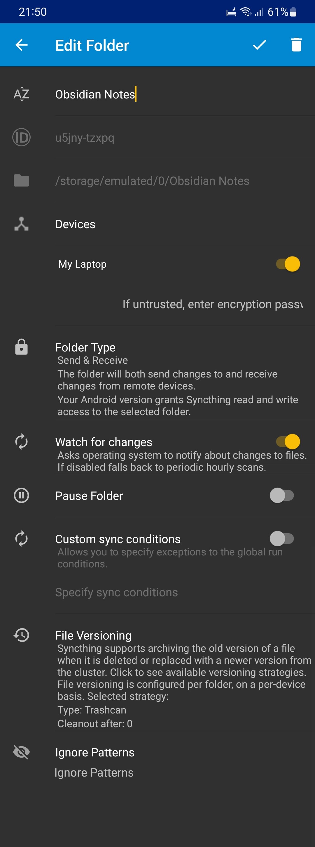 I’m new to using Syncthing, so I would greatly appreciate if you would help me solve this issue. I will insert photos below from my laptop and phone.