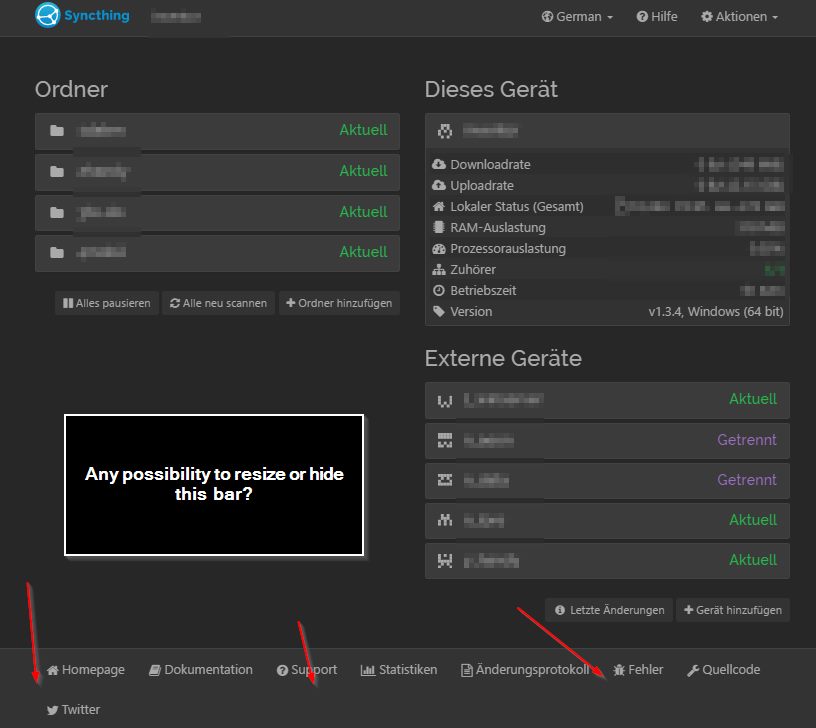 Is there any way to resize or hide the bottom link bar? It often interferes on my devices because they all use different resolutions and i have to resize the Synctrayzor window every time.