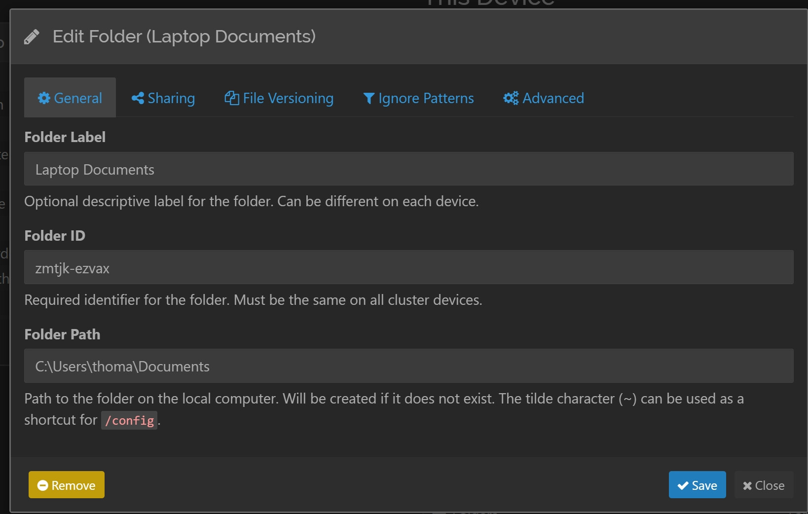 I suspect you might be misunderstanding what to enter for the path. The Syncthing GUI on the DXP2800 system is not the place to enter a path copied from your laptop. What connects the folders on both devices together is the common folder ID (zmtjk-ezvax). At least it should be the same on both devices.