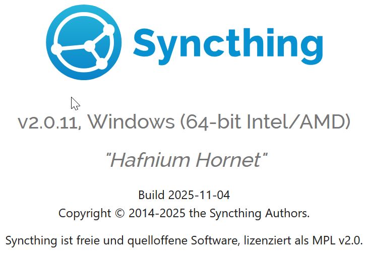 2025-11-20 21:37:24 Established secure connection to SLMVR7H at [::]:22000-192.168.178.21:22000/quic-client/TLS1.3-TLS_CHACHA20_POLY1305_SHA256/LAN-P20-63PQ5S64TOD7MVDLBV46JG0MV2