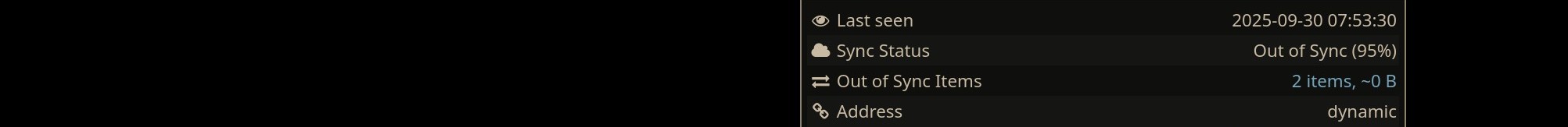 It’s not just the out of sync items problem, but also the creation of “sync-conflict” files that is a serious issue. Even when the file has the same name and “size,” sync-conflict files still get created. Preventing this would be wonderful.