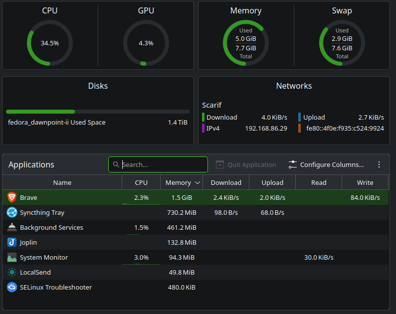 A downside to Flatpak and/or other similar sandboxed packages is that Syncthing Tray will load its own private copy of Qt and other supporting libraries, so you’re basically running a mini KDE on top of your KDE desktop. Installing via RPM will reduce RAM usage by allowing Syncthing Tray to share the KDE libraries with your desktop.