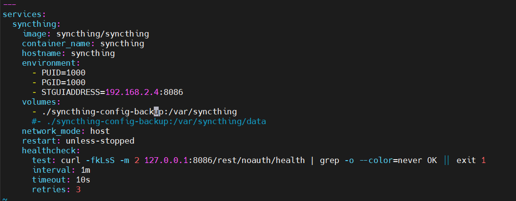 Docker ps shows my instance unhealthy. Do I need to do something with port 8384? Did I configure this right? Accessing the webui, it doesn’t look like anything carried over. I am using a different IP, so not sure if that needs to be reflected somewhere….