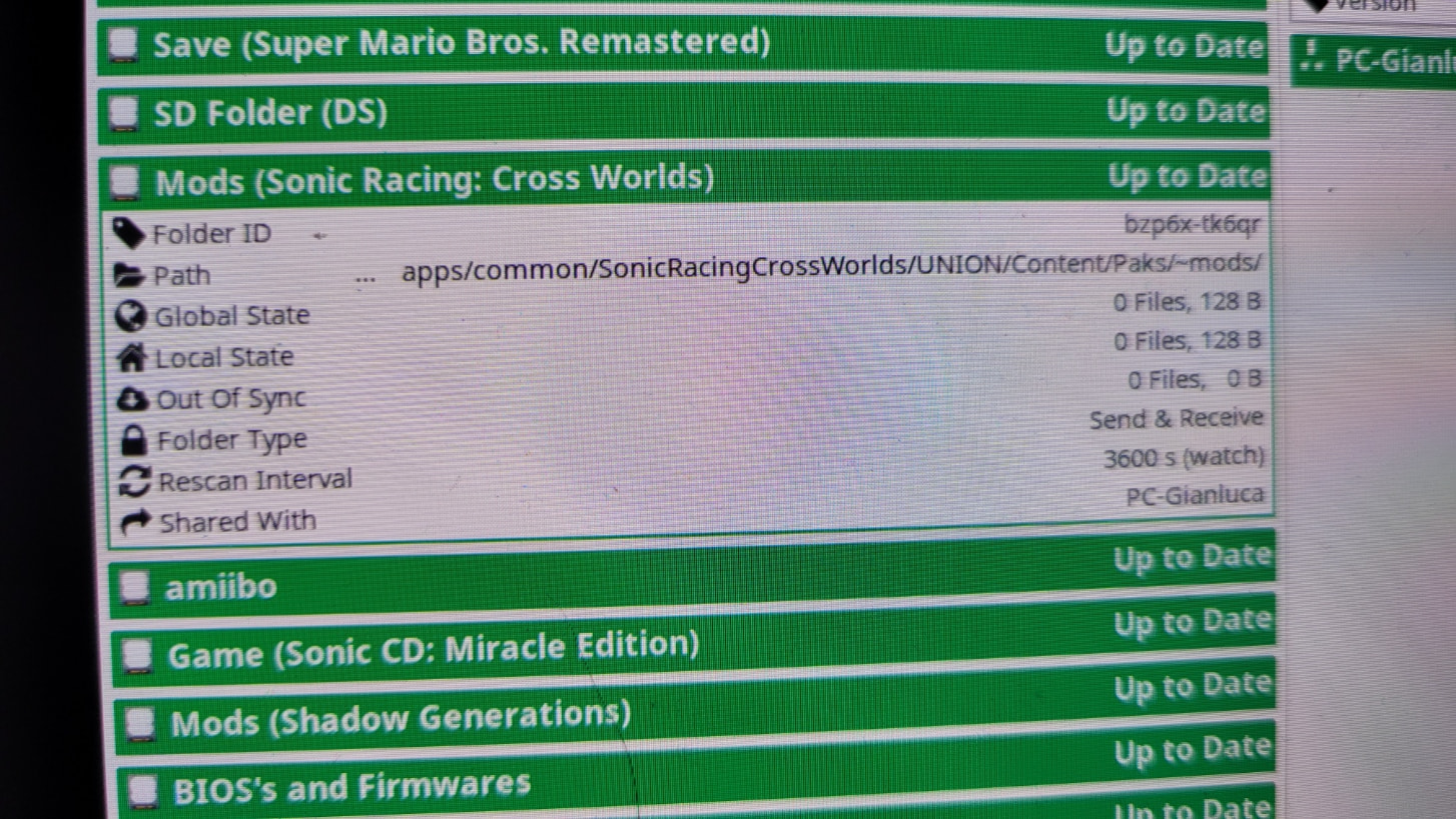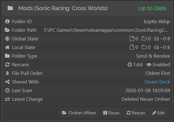 I tested if i can share just the content of one of these folders directly and that works fine again. Its just Syncthing doesnt detect these folder types directly. Im gonna ask the maker of the Mod Manager what folder types they are and how they are named.