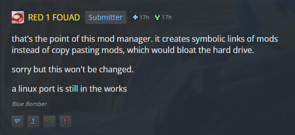 okay the ccreator of the Mod Manager said this and i think thats the issue here. can Syncthing maby do anything about this? Or could it support symbolic links in the future?