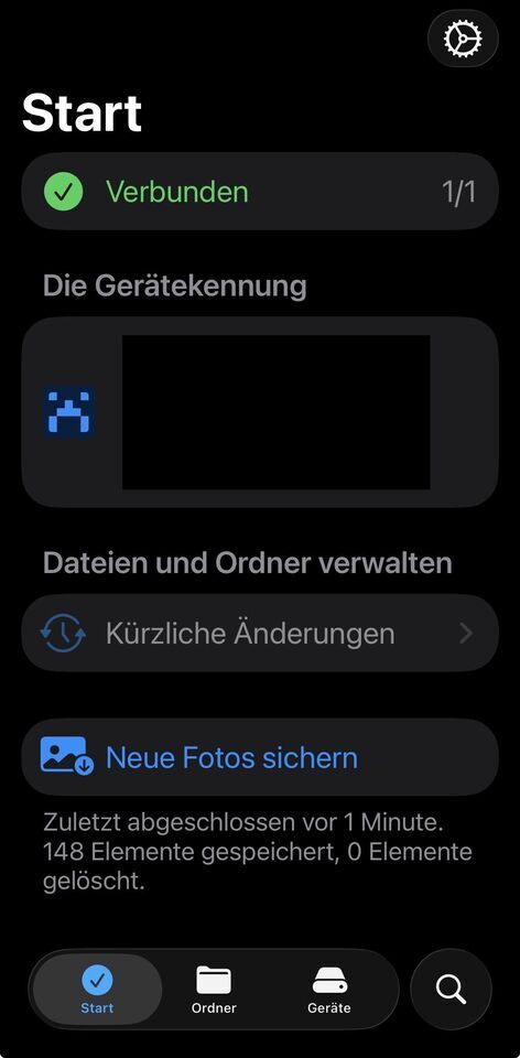 I just triggered “Backup New Photos” (Neue Fotos sichern) again. After 2 days (I had not taken any new pictures), it reported that around 900 photos were saved, but the whole process completed very quickly, and nothing appeared under “Recent Changes” (Kürzliche Änderungen).