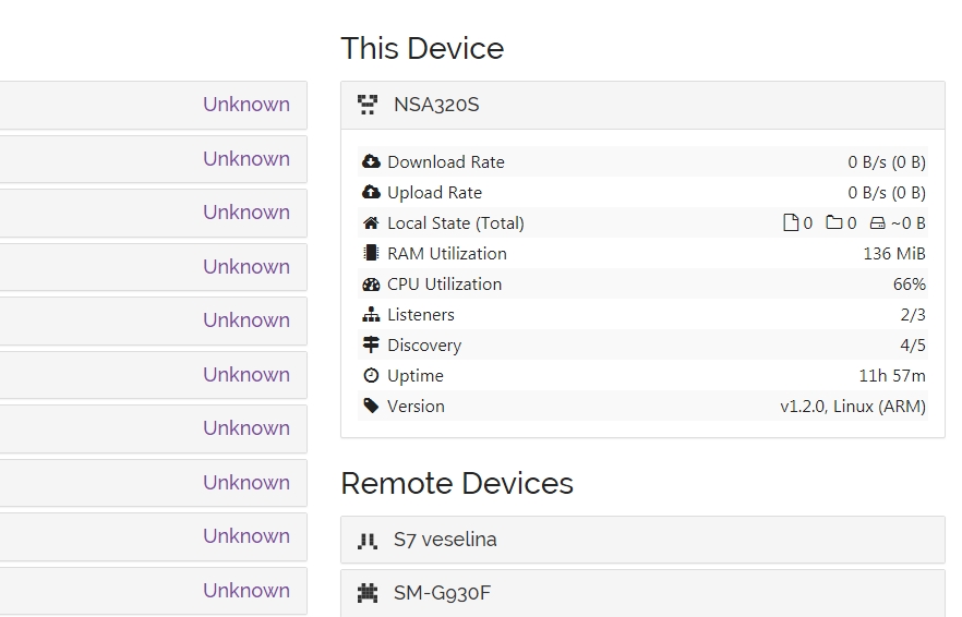 Typically it would take about 7 hours to copy that amount of data to the old DS411slim NAS. However syncing it via syncthing will probably take 18days at the current rate. I’m at 52% right now and basically keep it up to see what happens in the end. Right now I notice that the syncthing instance running on the DS411slim starts disconnecting other devices after roughly 18 to 28 hours until no connection is left and syncing stops. The NAS GUI itself is still operating slow but normally. The other services running on the NAS seem to work as well. In that state it is faster to just reboot the NAS than logging into the syncthing Web GUI and restarting the service there. I didn’t try it via SSH since I have it disabled on that machine for security reasons. Checking logs didn’t really yield any information about why it doesn’t see the other machines anymore.