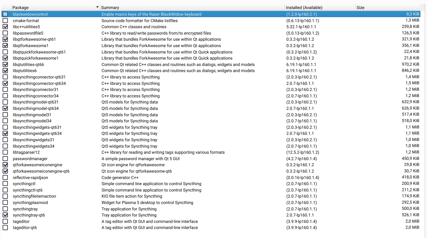 Oh, right - you’re talking about KDE integrations specifically. I’ve now enabled them in the VCS sub project (see Show home:mkittler:vcs / syncthingtray-qt6 - openSUSE Build Service ) and if it builds I’ll enable them also in the regular project. Unfortunately OBS decided to block the build/scheduling on some other packages even though I haven’t changed those. So we’ll have to wait…